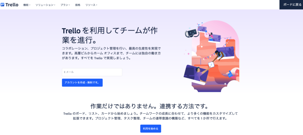 - カンバン方式のタスク管理(ボードにカード登録をして使用する)